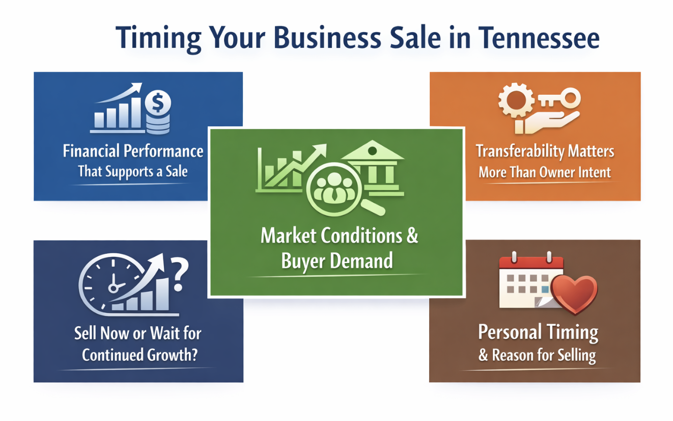 The best time to sell a business in Tennessee usually comes down to whether the business can support a defendable price and a workable transition now. Good timing is not just about market trends or one strong year of profit. It depends on what a buyer can verify, what a lender can finance, and whether the business can operate under a new owner without too much disruption. That is why many business owners start with the wrong question. The better question is whether the business is ready to sell on terms the market is likely to accept.