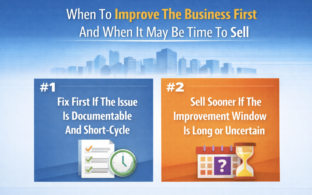 Not every owner should delay the sale process to chase a better number. Some improvements can raise business value before selling within a few months. Others require years of execution and still may not produce a higher multiple. The right timing depends on whether the gap is fixable, measurable, and likely to matter to buyers.